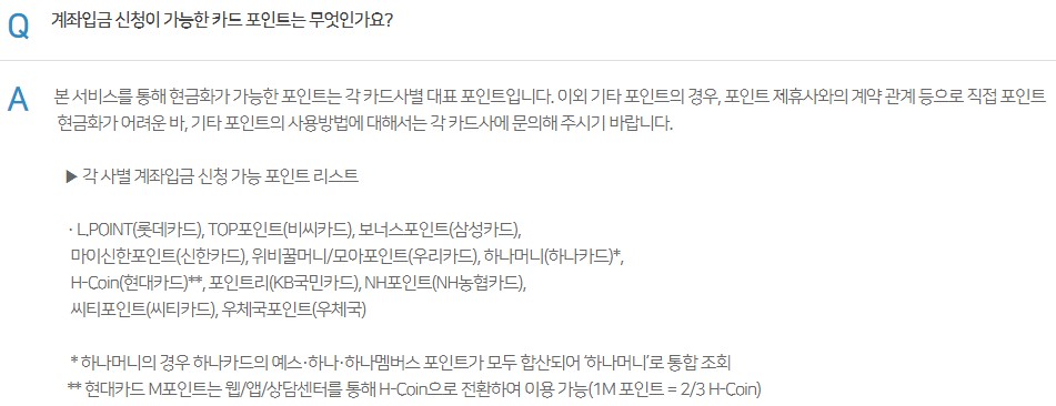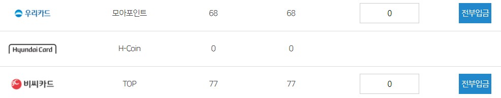 조금 당황스러운데요 카드포인트 통합조회에서 확인한 포인트 전부를 입금받을 수 있는 것은 아니었습니다