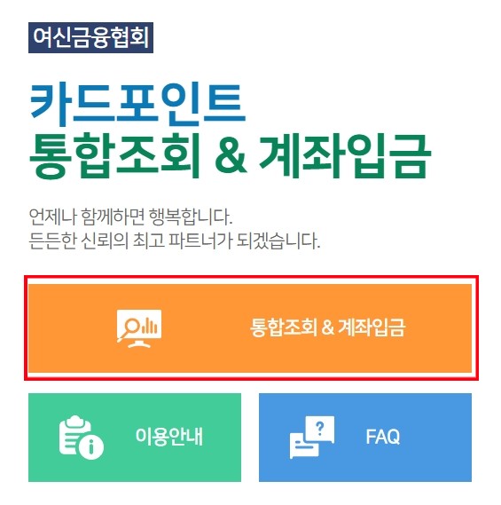 여신금융협회 카드포인트 통합조회 계좌입금 방법