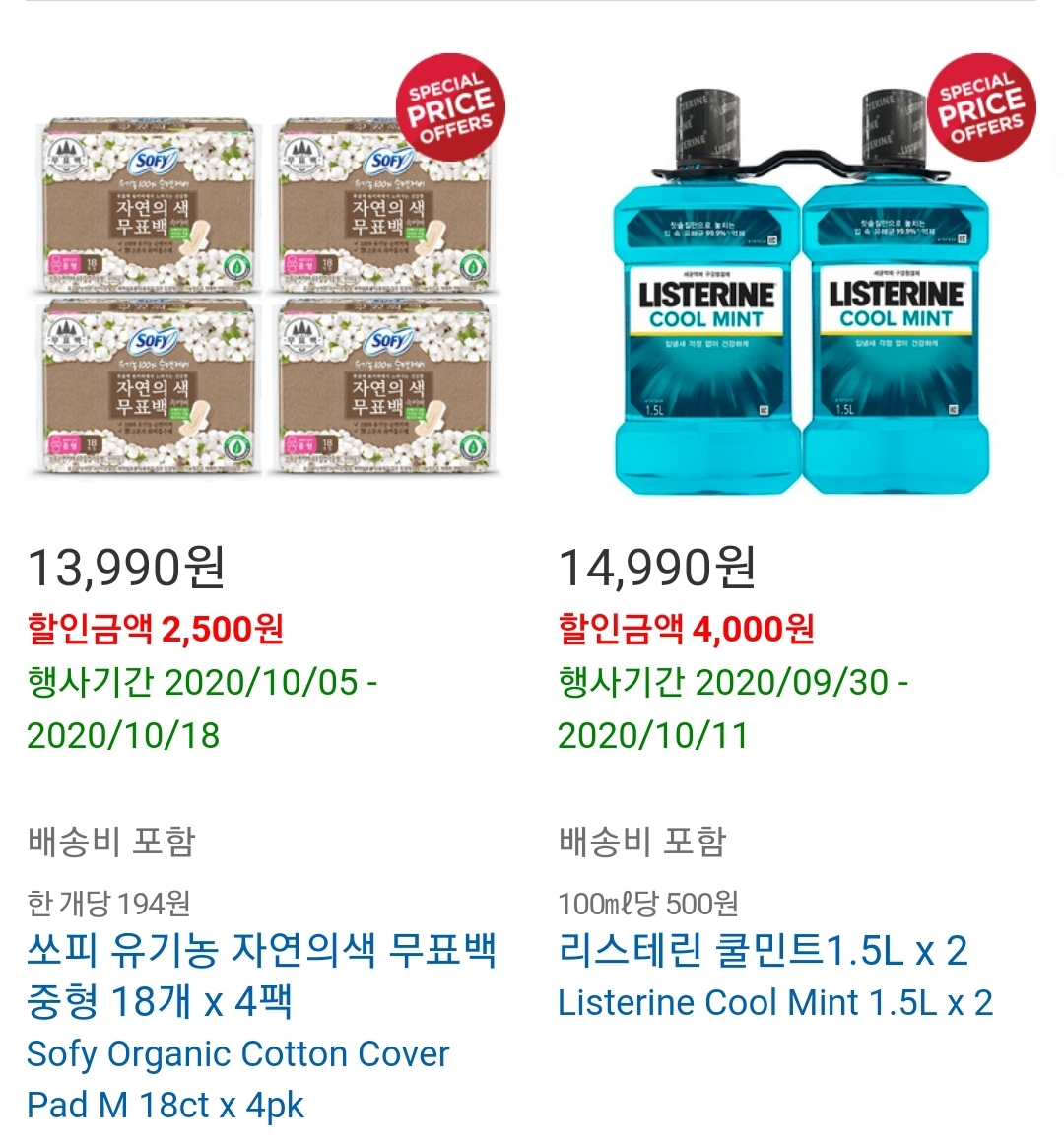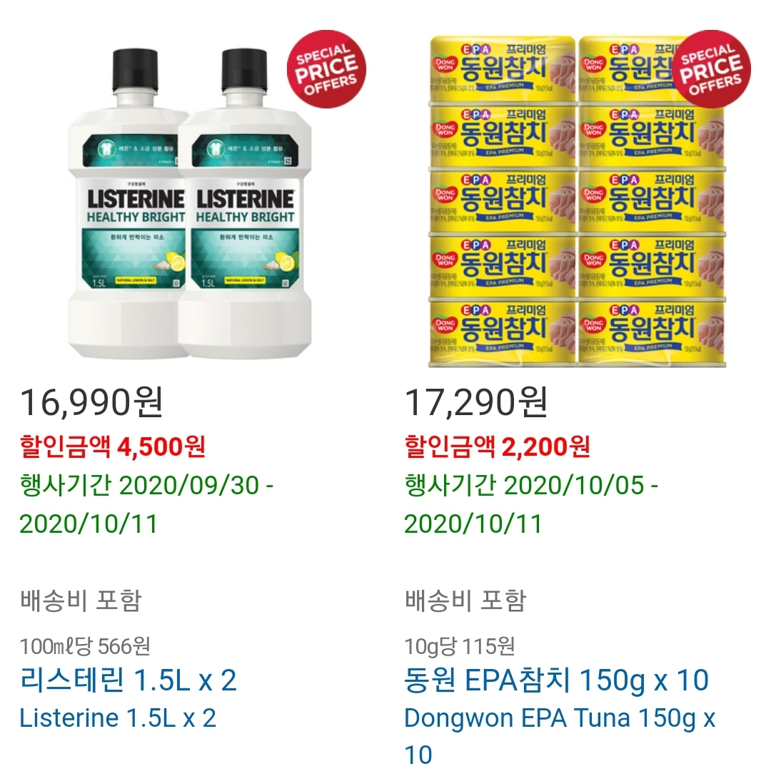 리스테린 가글액도 할인이 많이 적용된 제품 중 하나입니다 추가적으로 동원참치도 대량 구매해두고 먹기좋은 품목중 하나입니다