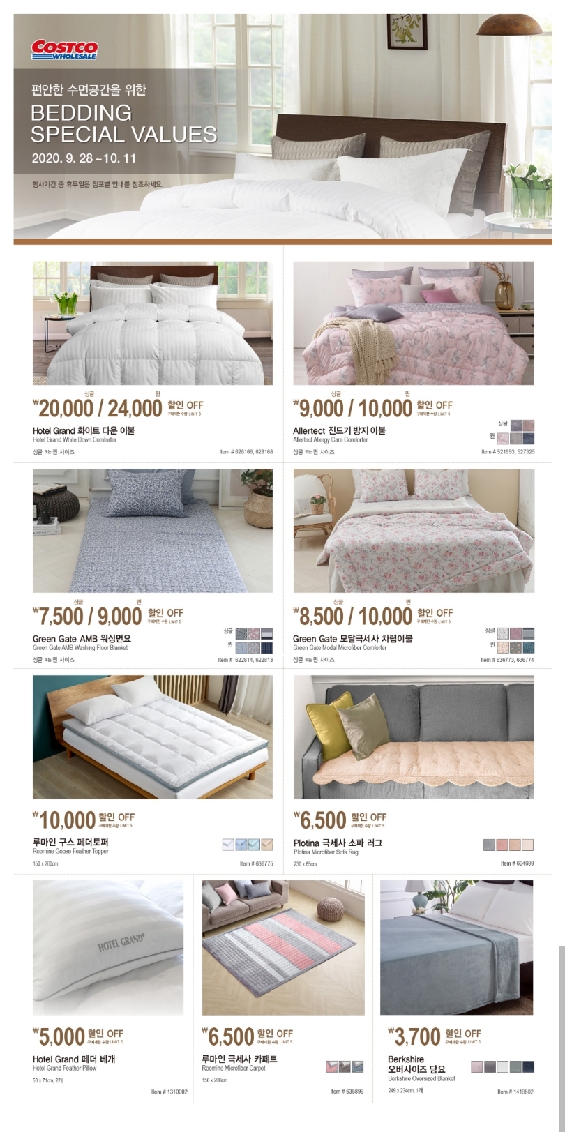 마지막으로 코스트코 매장에서 진행하는 10월 침구류 할인 상품까지 소개드렸습니다
