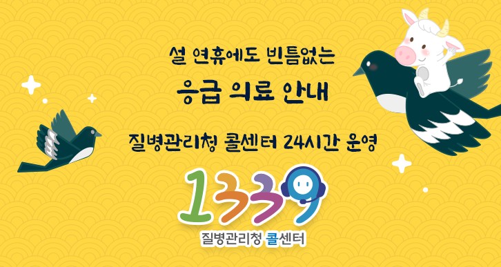 2021년 설 연휴 응급환자 발생을 대비하여 질병관리청에서는 통합 콜센터를 24시간 운영할 계획입니다