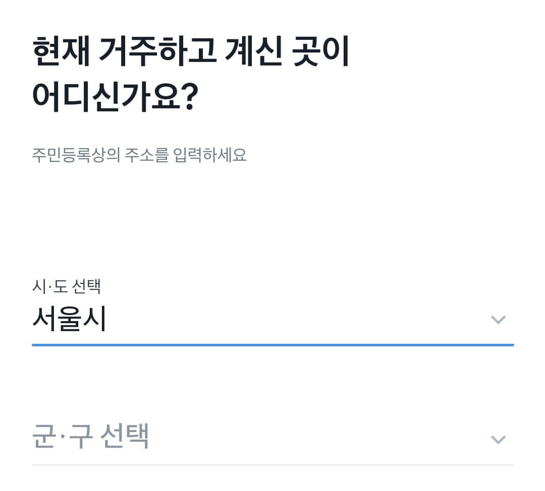 ⑤ 거주지, 직업, 자녀 유무를 입력합니다