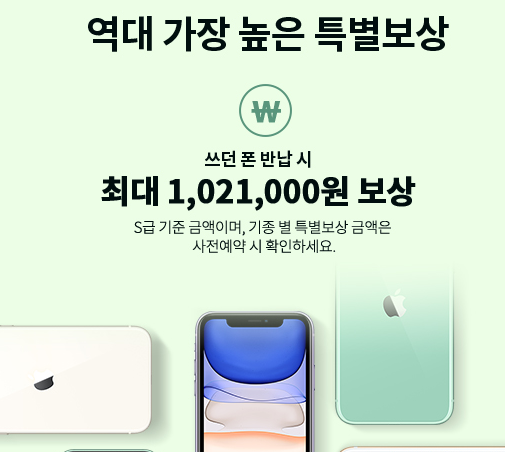 거기에 더해 아이폰12 사전예약자에게는 사용하던 중고폰을 반납할 경우 최대 102만원까지 보상하는 중고폰 특별 보상 프로그램을 운영할 예정이라니 이건 뭐 무조건 아이폰12를 SK텔레콤에서 사라고 하는 말 같습니다