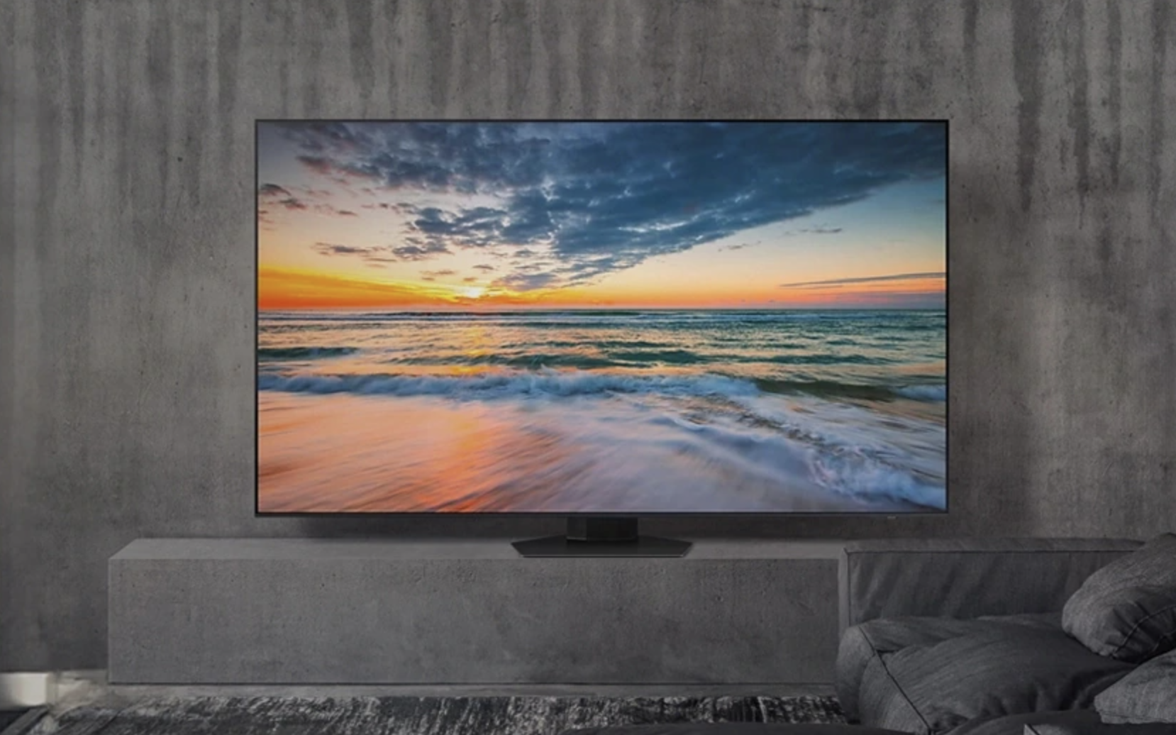 화면 테두리가 깔끔하게 흡수되어 시선을 집중시키며, 스탠드는 안정적으로 TV를 지지하면서도 고급스러운 느낌을 줍니다.