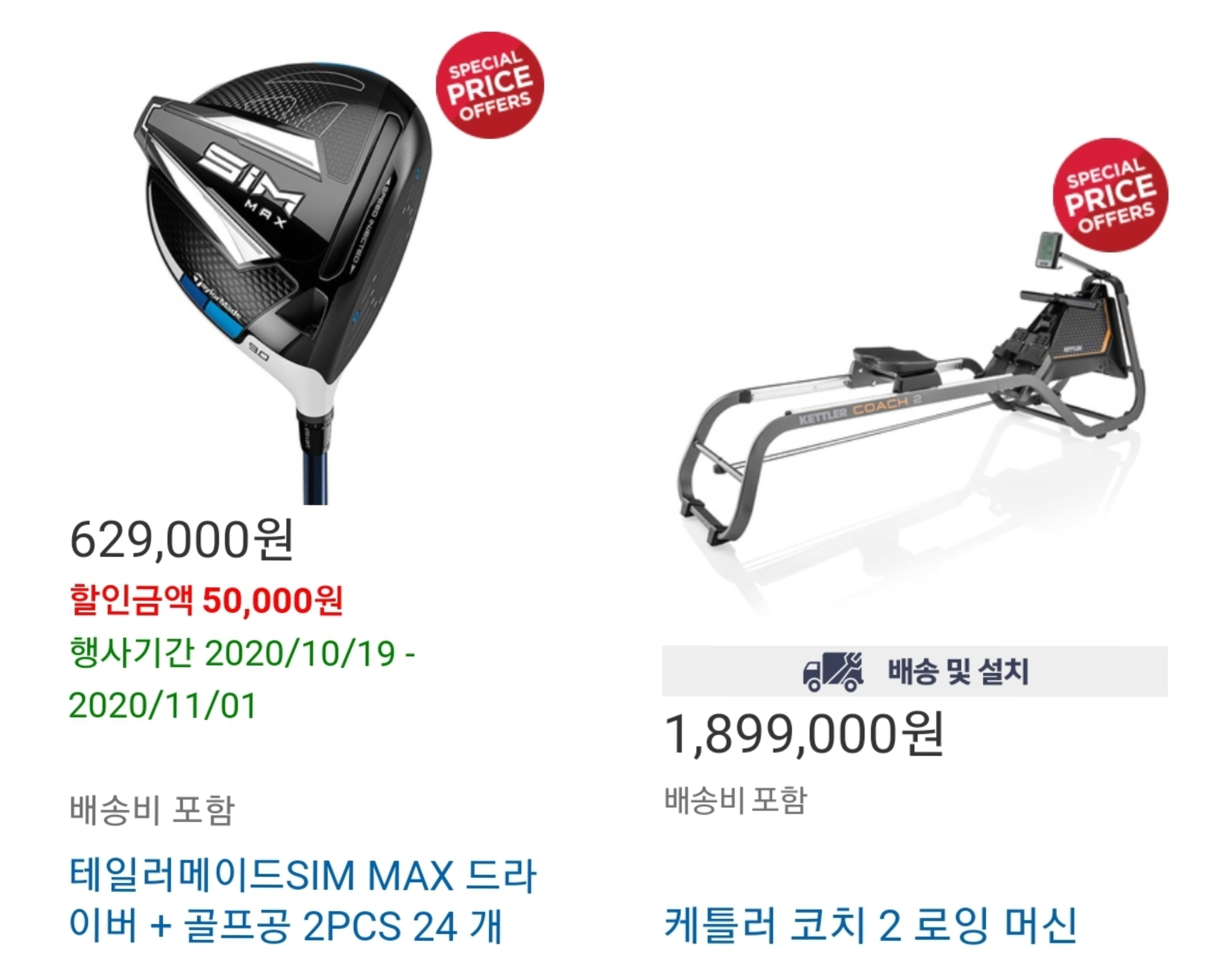테일러메이드 골프채와 로잉머신도 할인대상 입니다