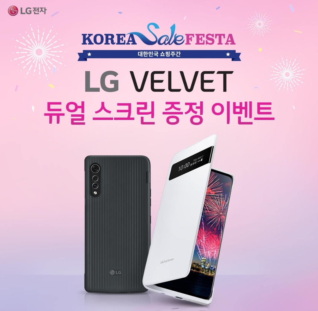 코리아 세일 페스타를 맞이하여 lg전자에서 신규출시된 신형 스마트폰인 lg 벨벳 구매자에 한해 lg 벨벳 전용 듀얼 스크린 증정 이벤트를 진행합니다