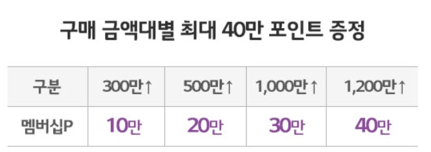 구매금액대별 멤버쉽 포인트 적립 행사도 진행됩니다