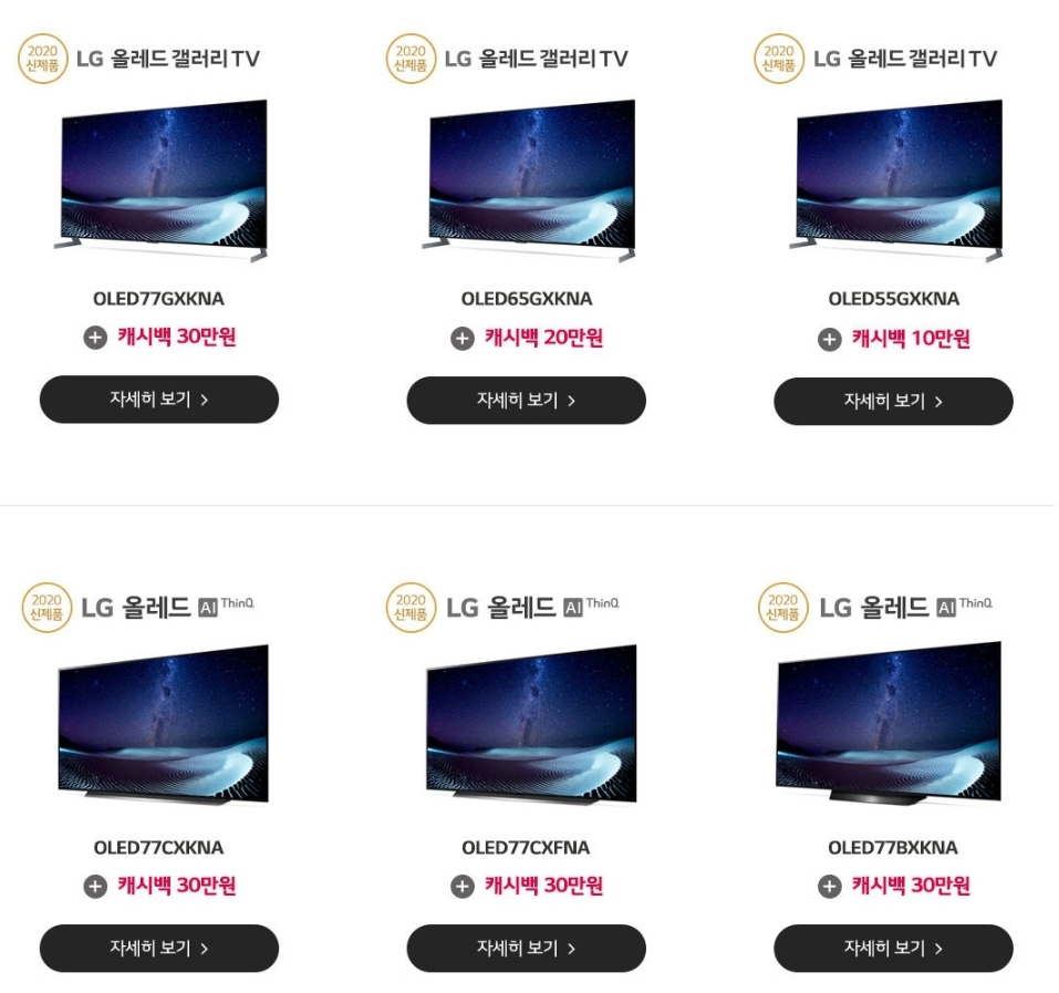 LG 시그니처 OLED 8K TV에 대한 캐시백이 200만원으로 제일 높은걸 볼 수 있습니다