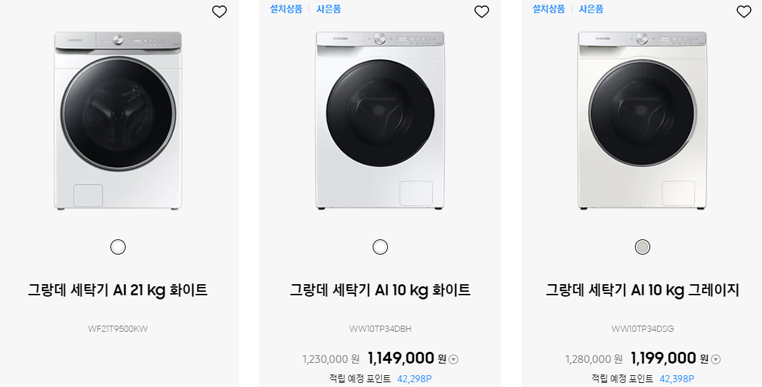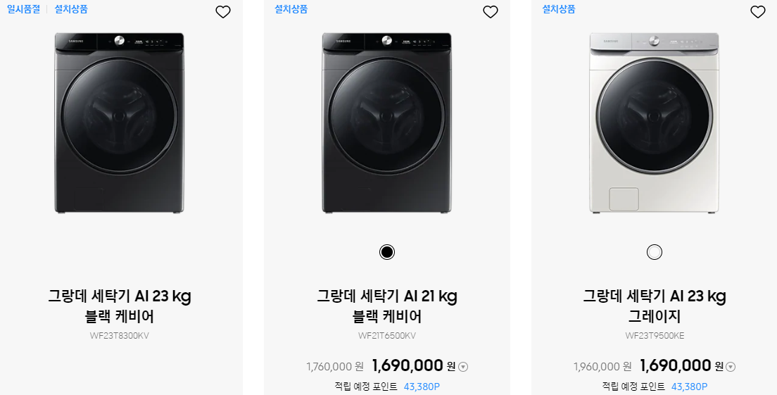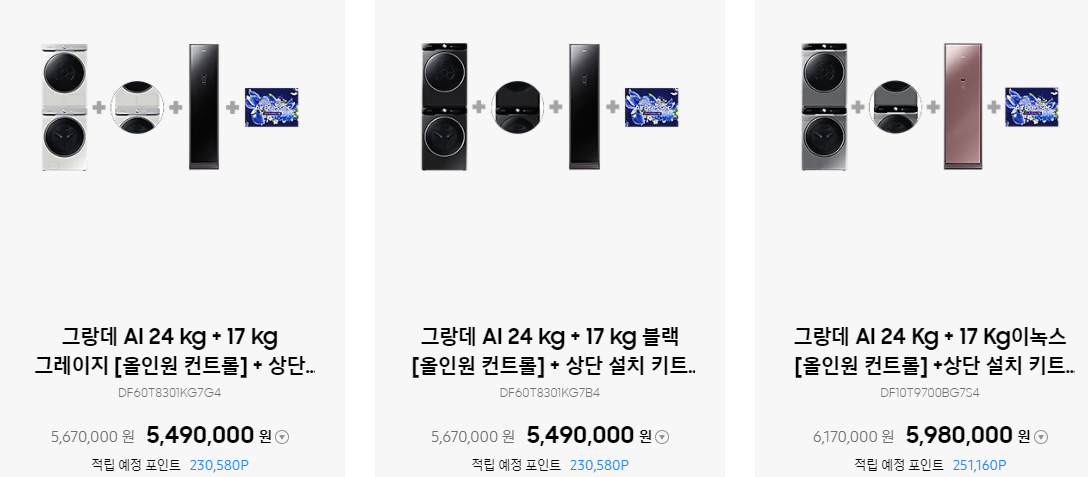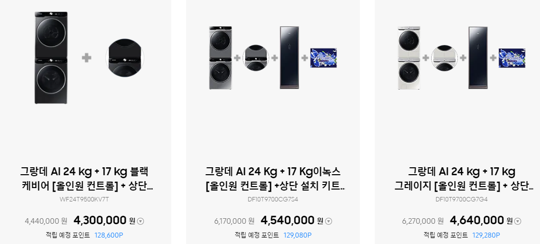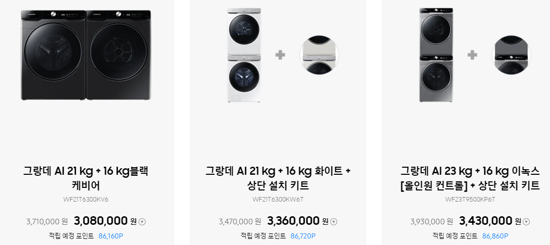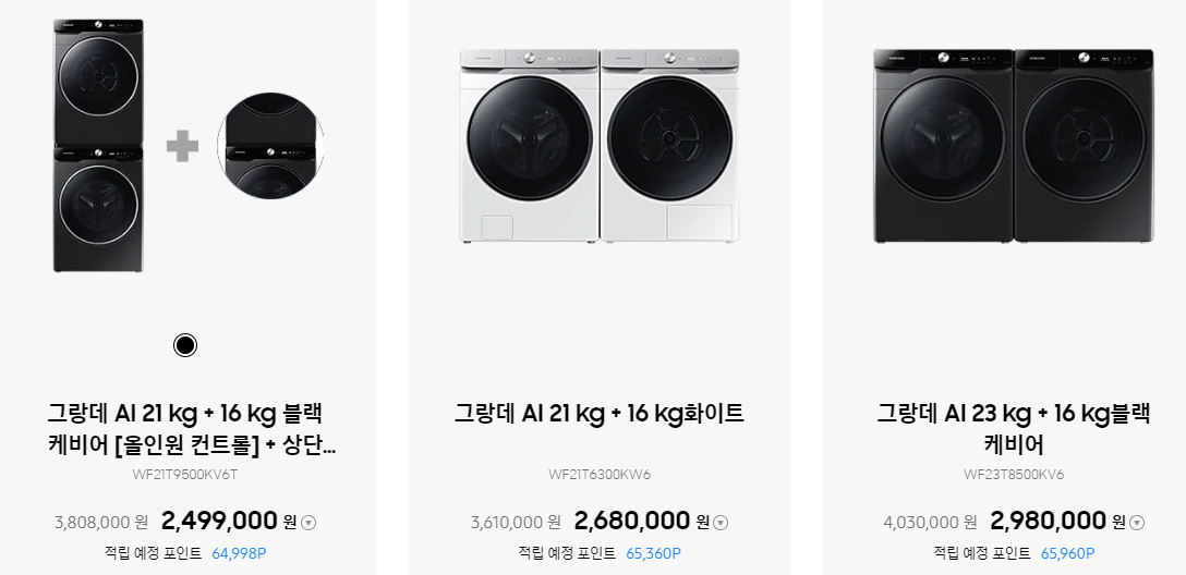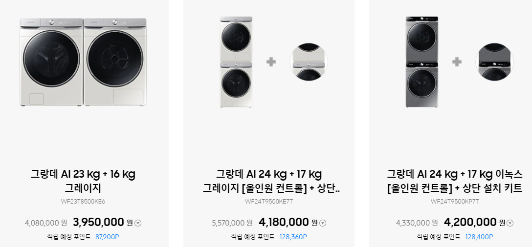 다음은 그랑데세탁기AI 모델 가격비교 입니다