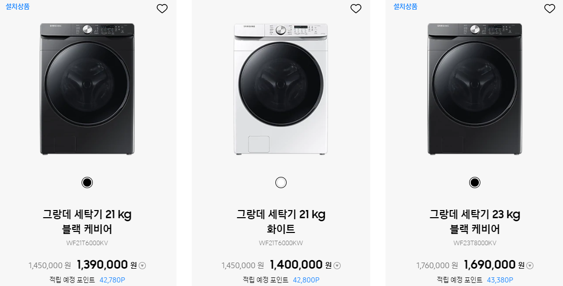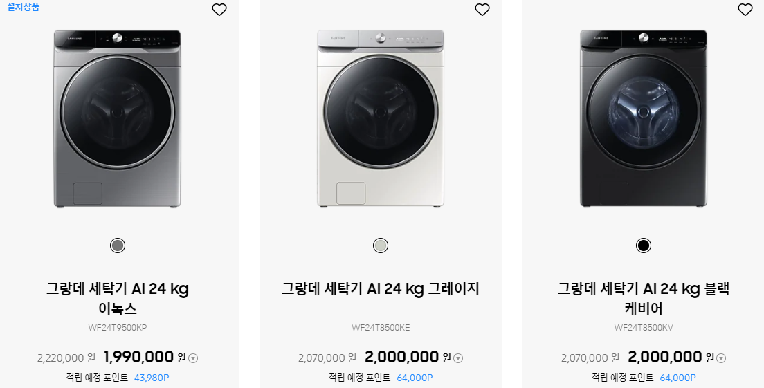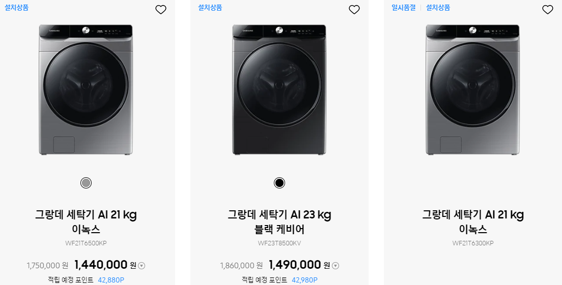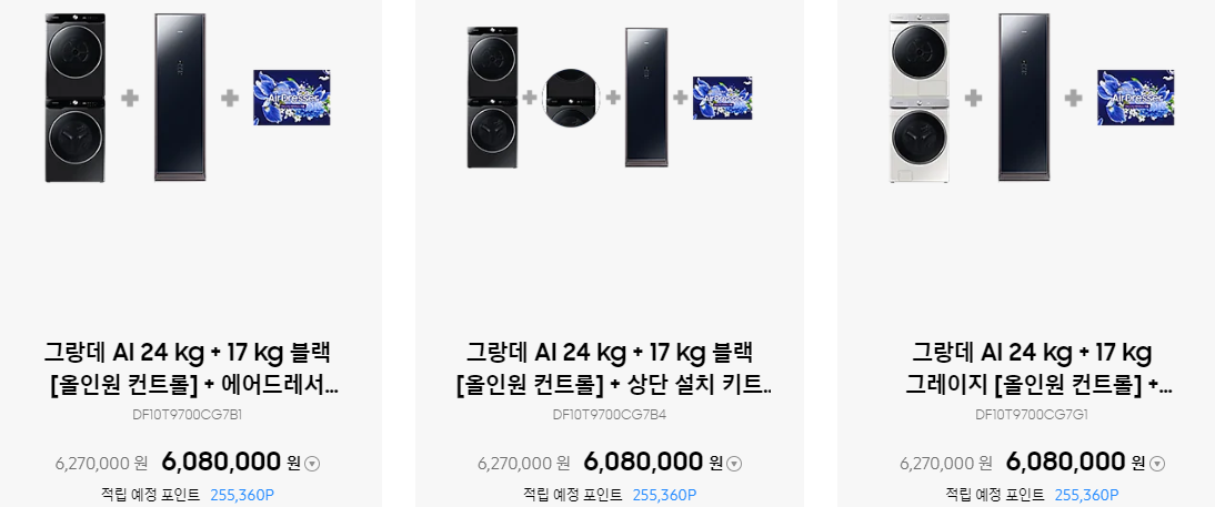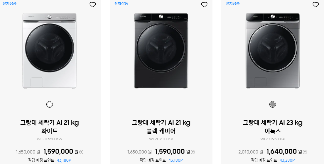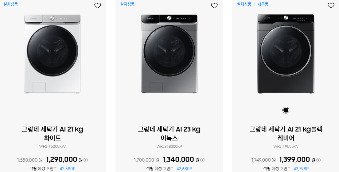 다음은 그랑데세탁기AI 모델 가격비교 입니다