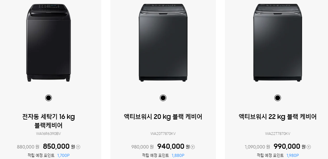 거기에 제품 구매 수량 별 특별 포인트까지 추가 적립된다고 하니 세탁기 뿐만 아니라 삼성전자 가전 구매 계획이 있으신분들은 삼성전자 슈퍼세일 기간을 활용해 보시는 것도 좋을 것 같습니다