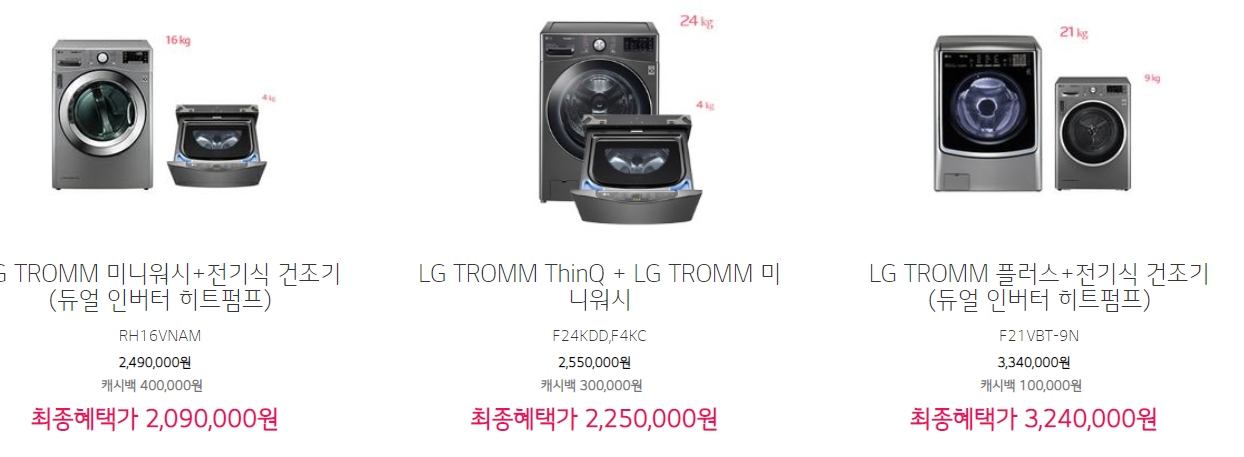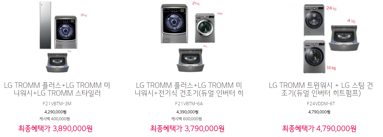 지금까지 300만원대 세탁기 패키지 가격비교였습니다