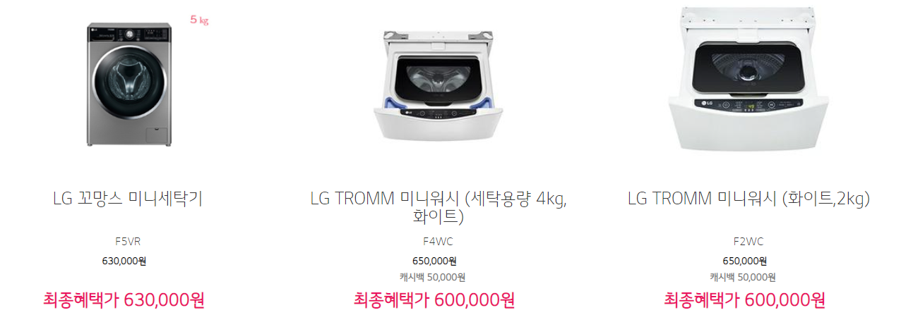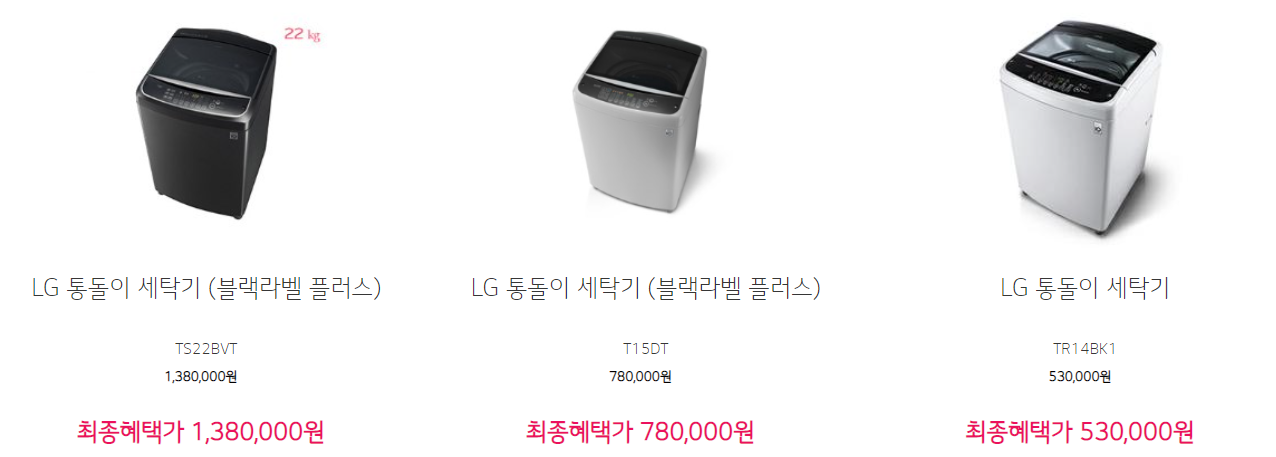 LG 세탁기는 트윈워시 때문인지 통돌이 세탁기는 모델 종류가 별로 없네요