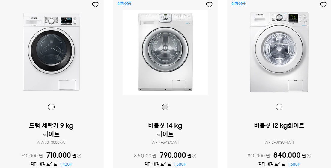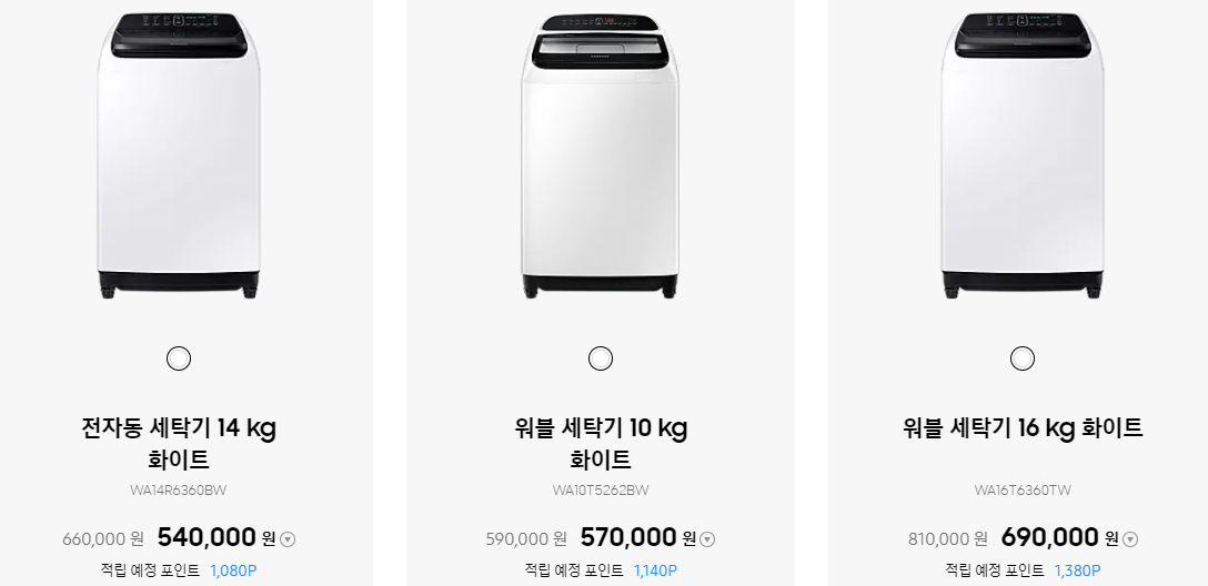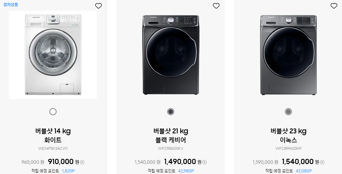 삼성 세탁기 패키지는 그 종류가 정말 다양하네요