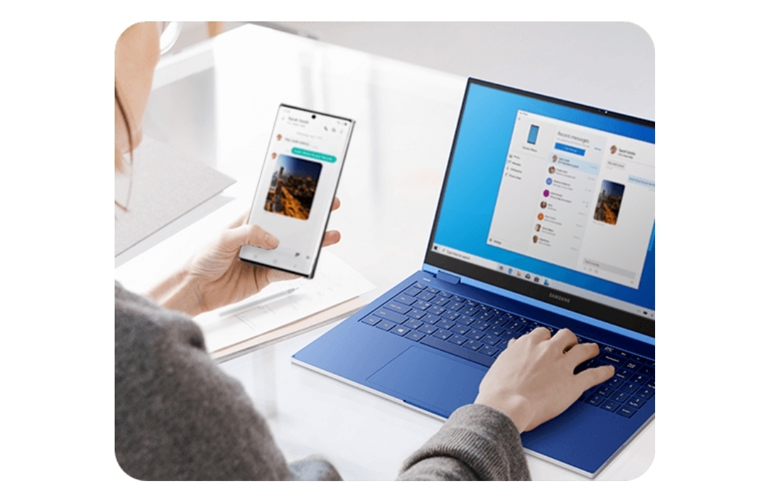 삼성전자에서 제공하는 사용자휴대폰 앱을 통해 노트북과 스마트폰유 하나처럼 연결해줍니다
