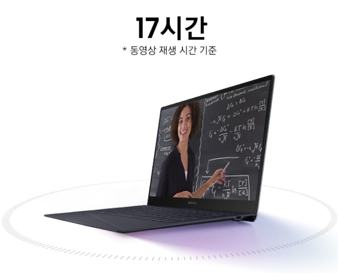 배터리 성능은 갤럭시북 이온이 최강입니다 무려 21시간 동안 지속적으로 사용이 가능합니다
