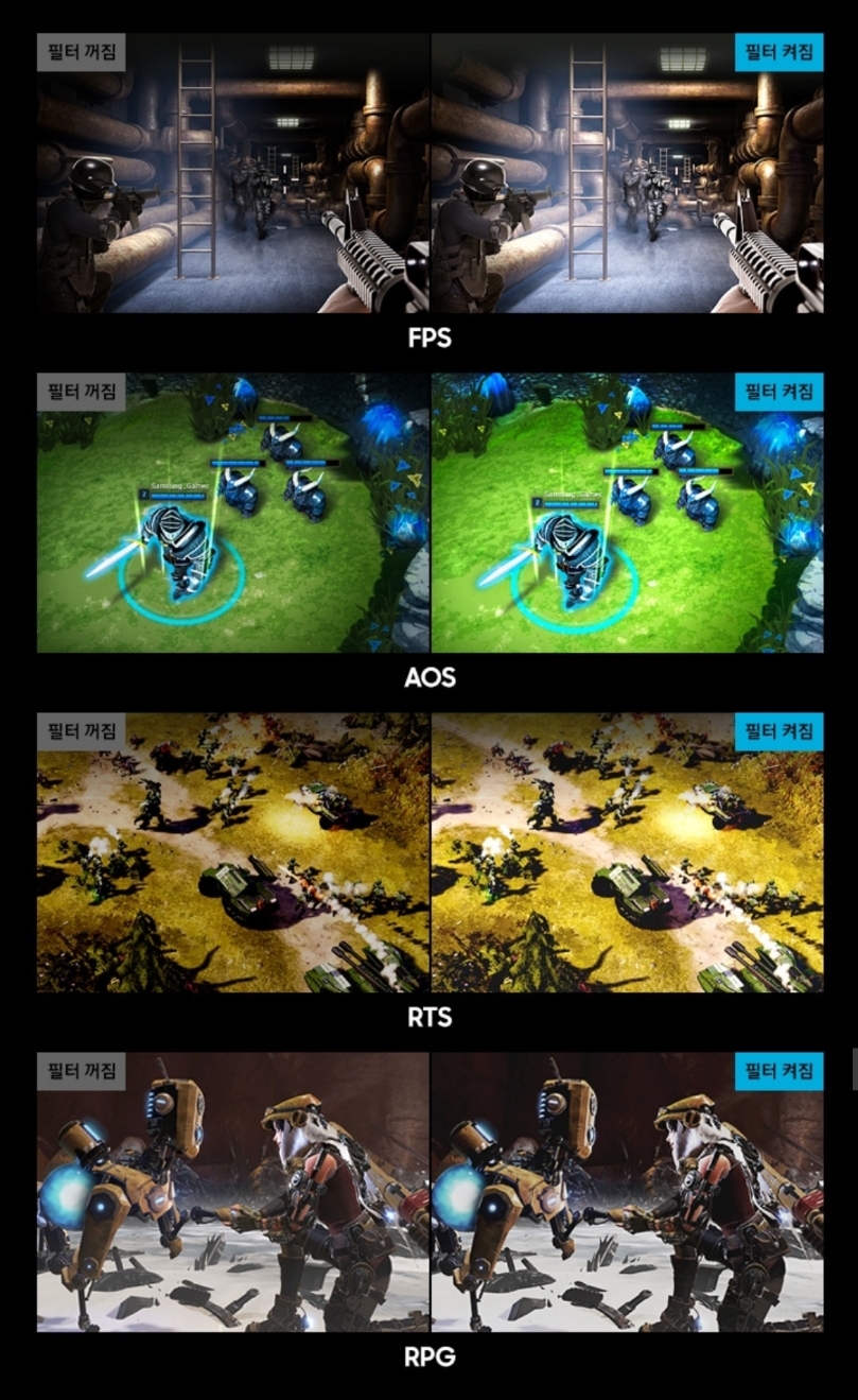 FPS, AOS, RTS, RPG 게임에 맞는 4가지 디스플레이 모드 설정이 가능합니다
