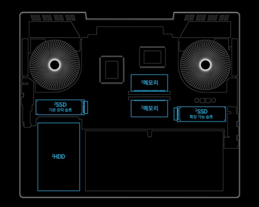 두개의 SSD슬롯, 하나의 HDD슬롯, 두개의 메모리 슬롯이 있어 원하는 사양으로 업그레이드가 가능합니다