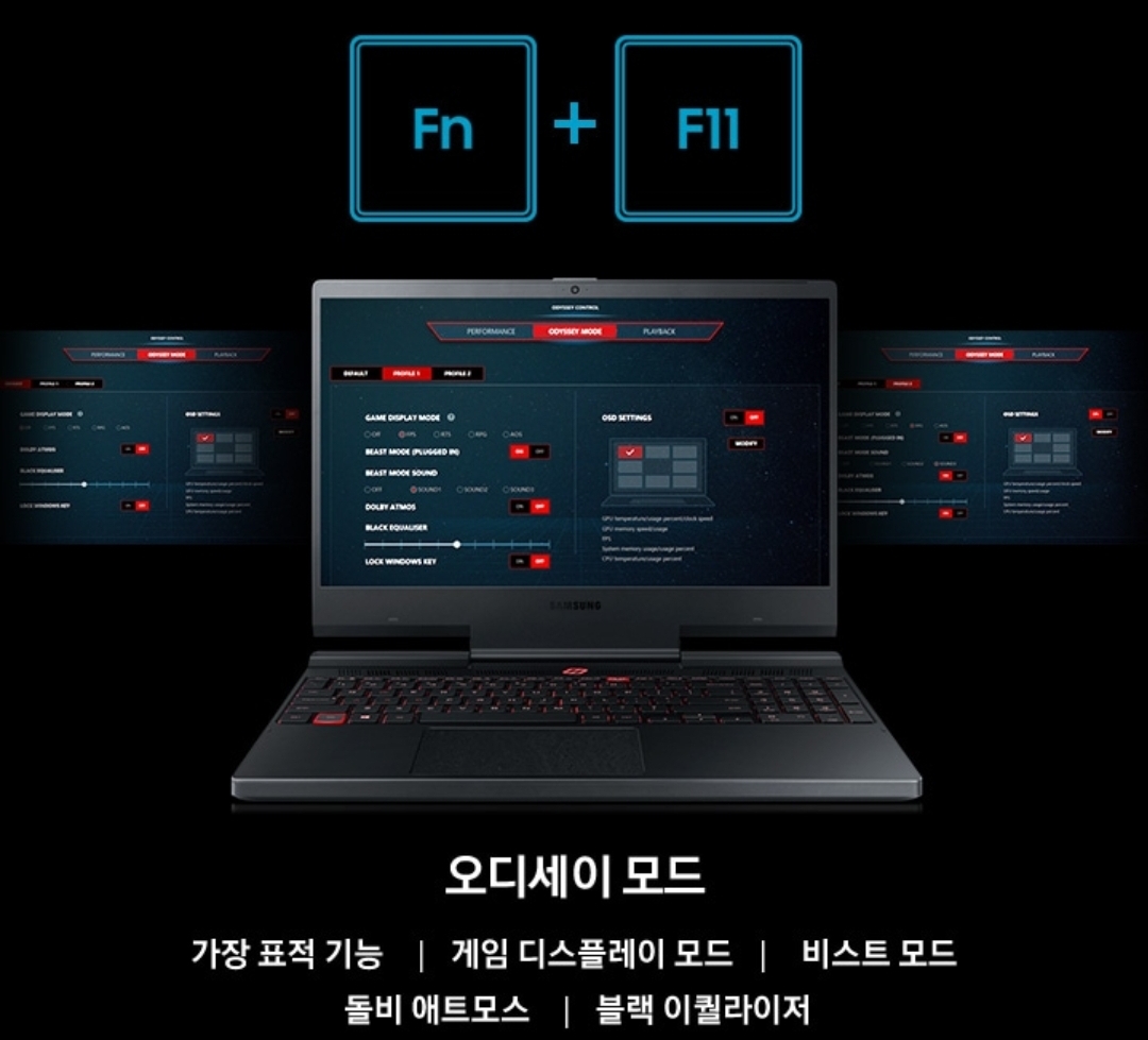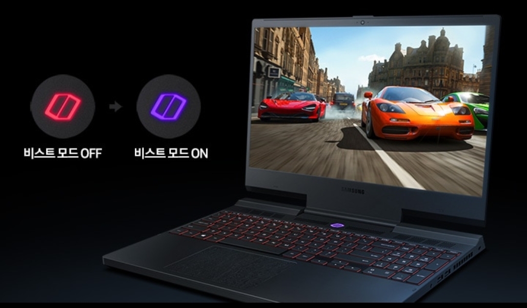 삼성 게이밍 노트북 오디세이에는 비스트 모드가 있습니다 말그대로 극강의 그랙픽카드 성능을 활용하여 고화질 게임의 풀 옵션 세팅도 즐길 수 있습니다