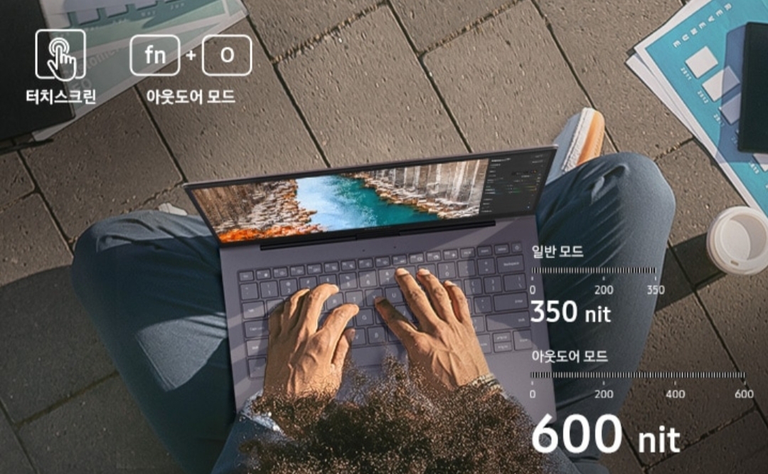 하지만 아웃도어 모드로 바꾸면 화면 밝기가 최대 600니트까지향상되어 햇빛이 강한곳에서도 선명한 화면을 볼 수 있습니다