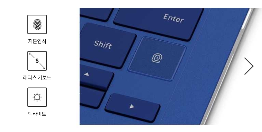 강력하고 안전한 지문인식 센서는 오직 사용자의 지문에만 반응하고 Window hello를 사용해 로그인도 바로 가능합니다