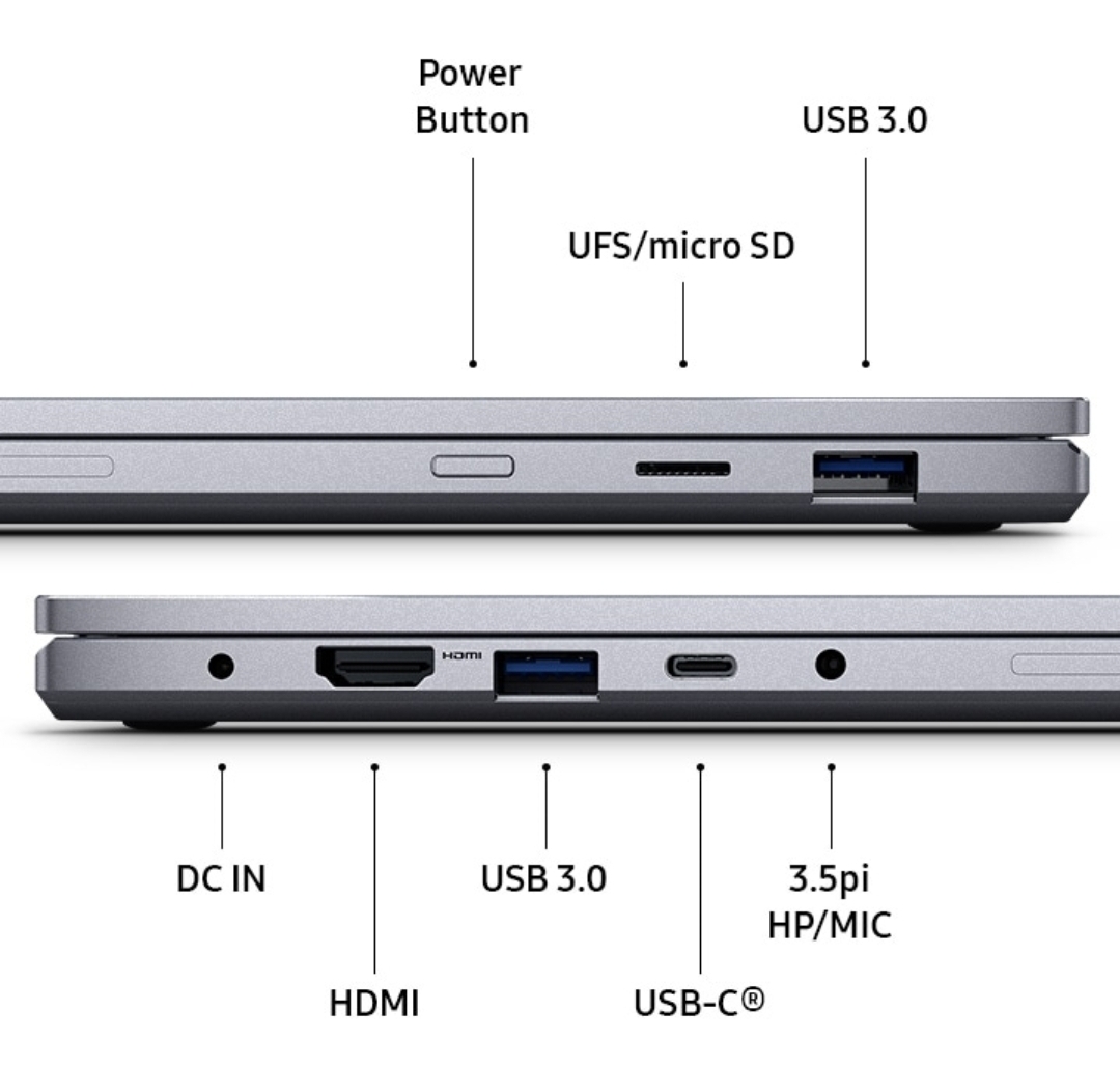 보급형 모델이라고 갤럭시북 플렉스 보다 전부 다운그레이드만 된건 아닙니다 앞서 말씀드린 삼성노트북 갤럭시북 플렉스의 단점이었던 USB Type-A 단자와 표준 HDMI 단자가 없는 문제를 보완하여 출시되었습니다