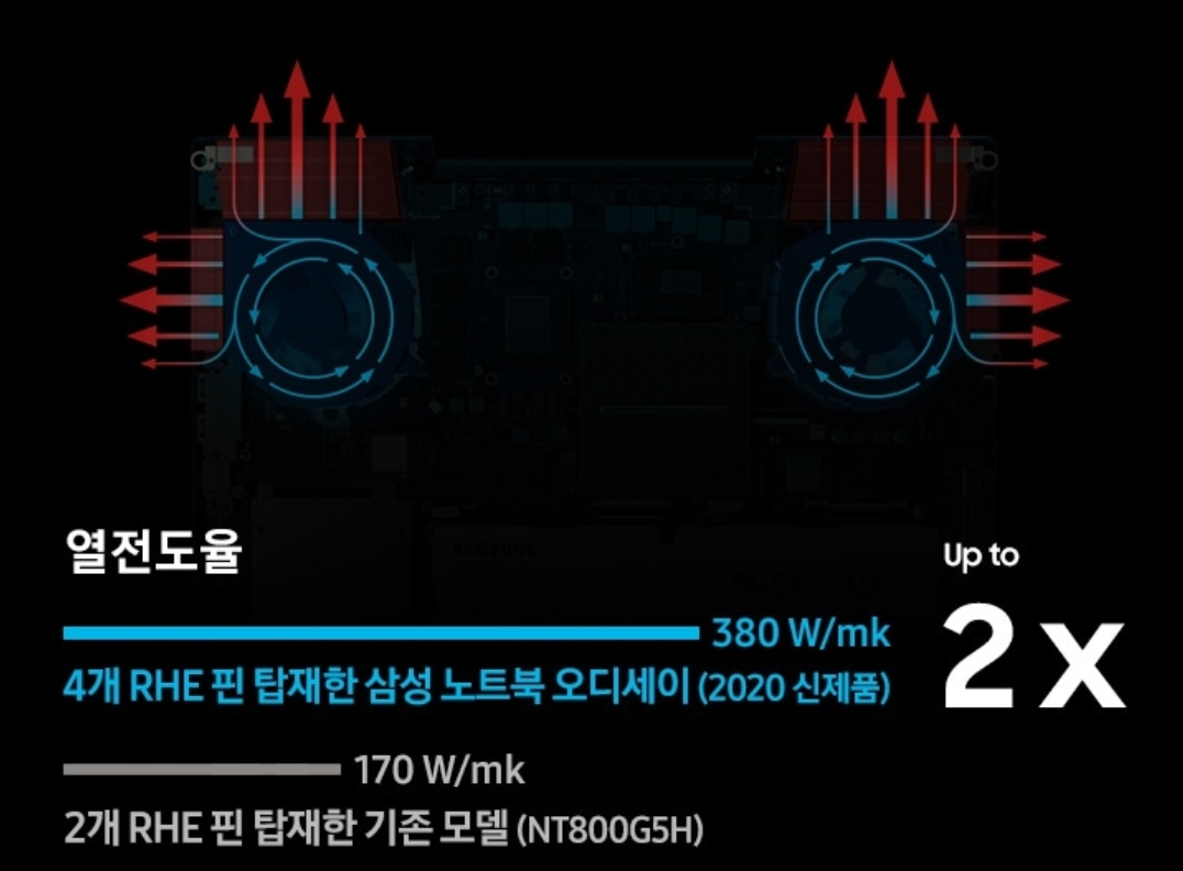 거기에 4개의 쿨링RHE핀이 높은 수준의 열전도율을 제공해 기존모델 보다 최대 2배더 강력해졌습니다