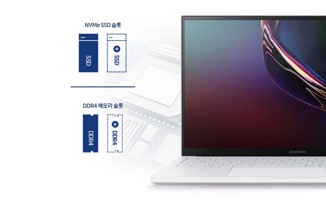거기에 갤럭시북 플렉스 알파 15.6인치 모델은 하드웨어 업그레이드가 가능합니다 램이나 SSD를 별도로 추가가 가능합니다