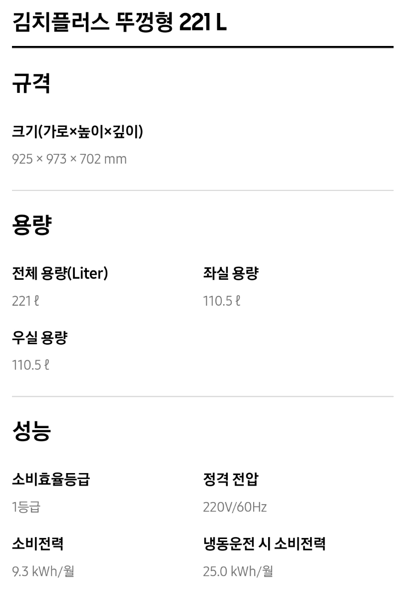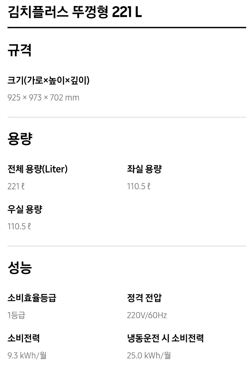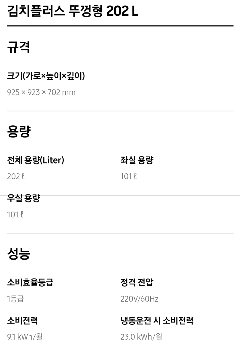 3. 삼성 김치냉장고 뚜껑식 주요성능 및 가격비교