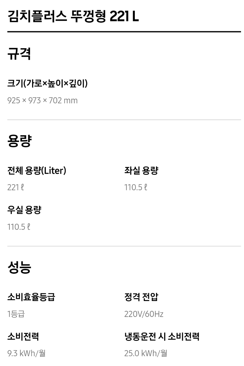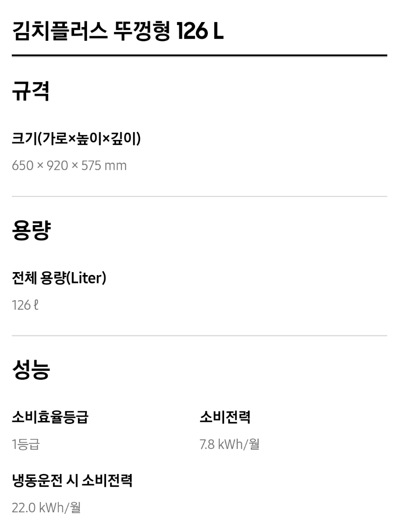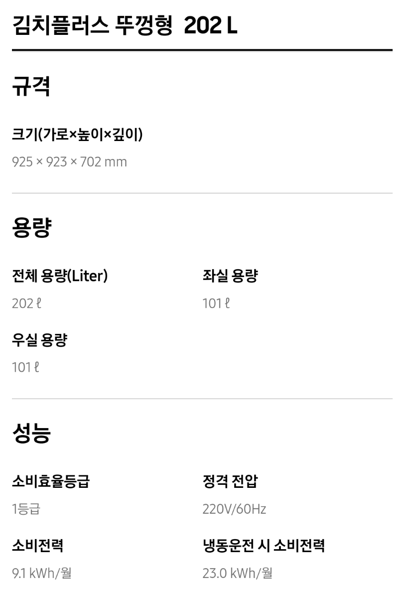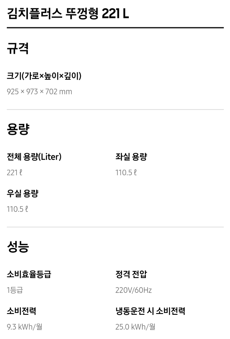 3. 삼성 김치냉장고 뚜껑식 주요성능 및 가격비교