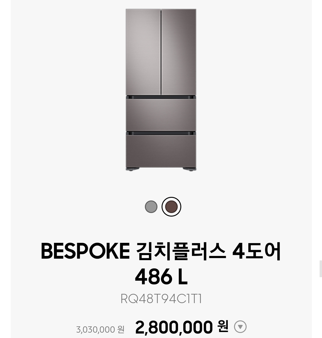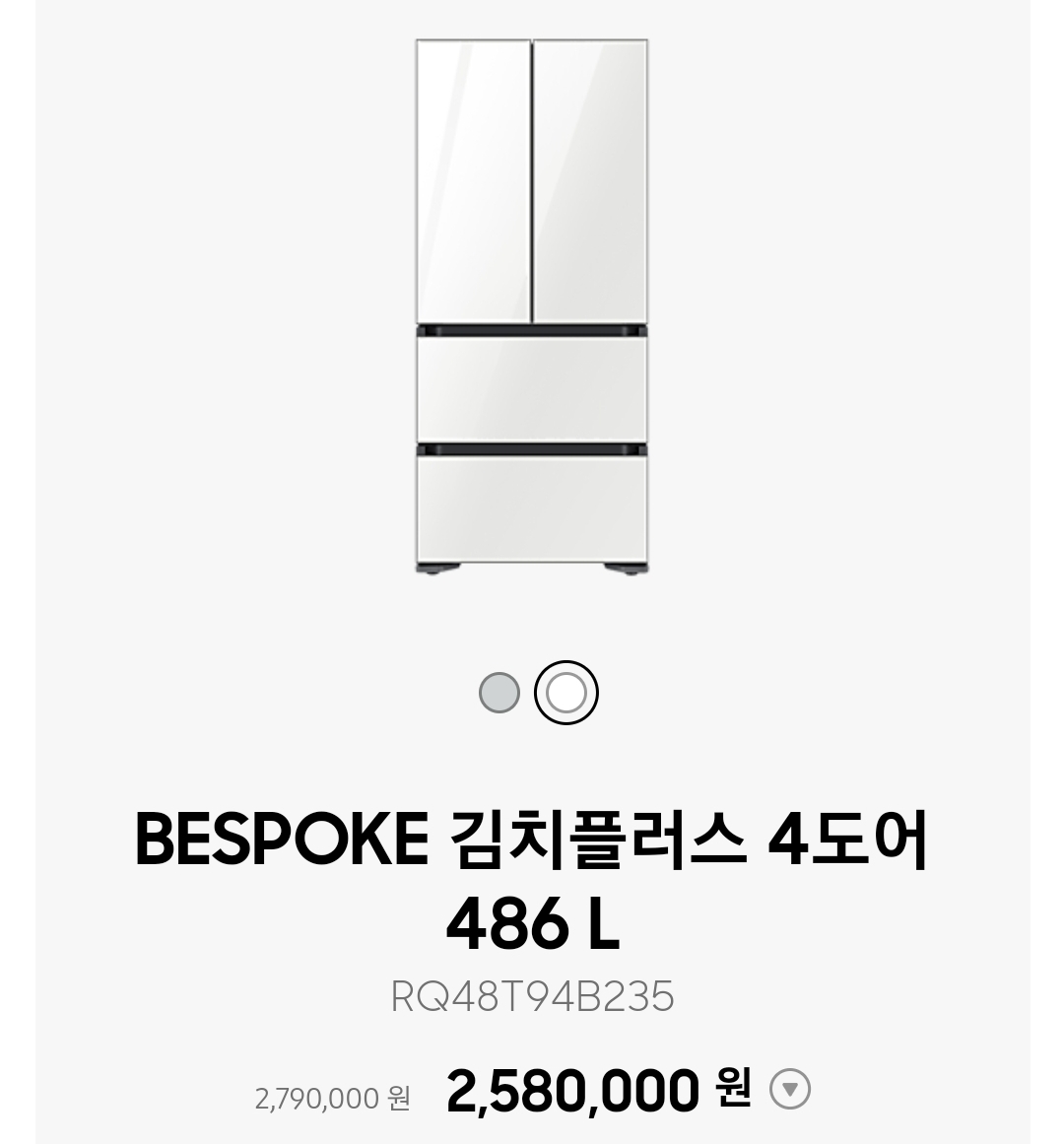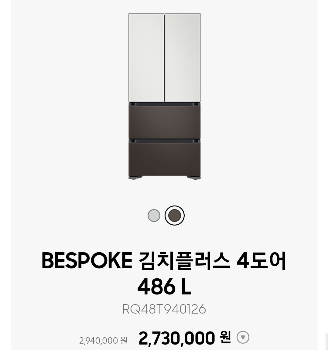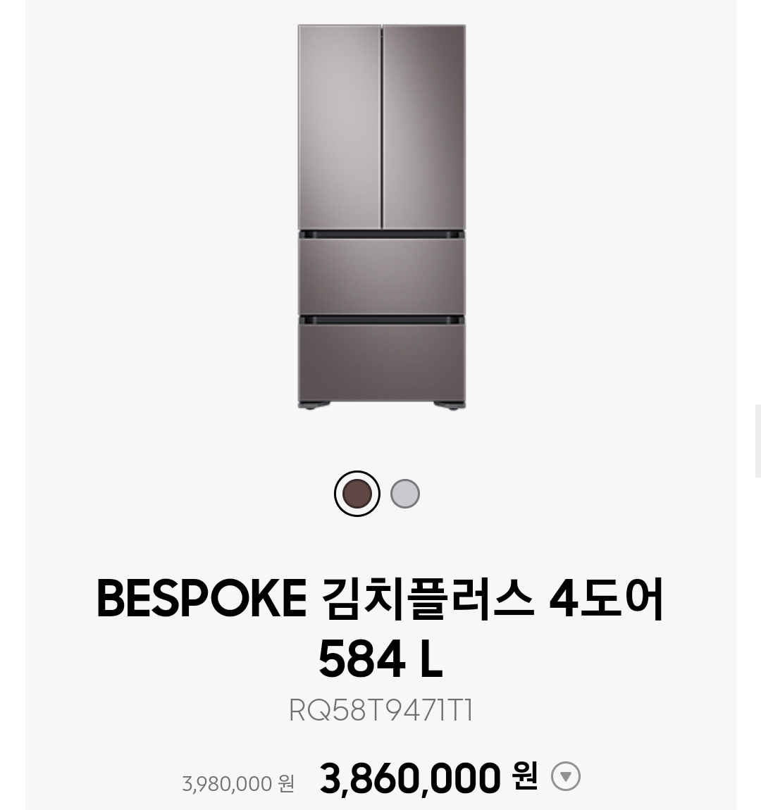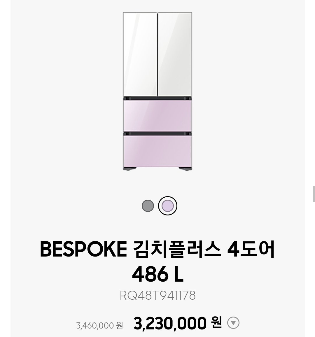 다만 색상 선택에서 비스포크 색상 선택이 되지 않습니다