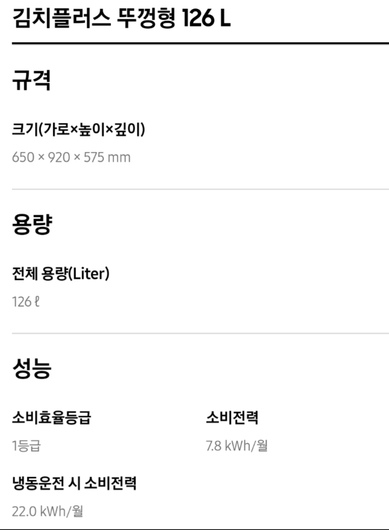 다음은 삼성 김치냉장고 뚜껑식 가격 사이즈 크기 비교 입니다 참고로 말씀드린것 처럼 여기소개되는 뚜껑형 전체 에너지 소비효율 1등급 입니다