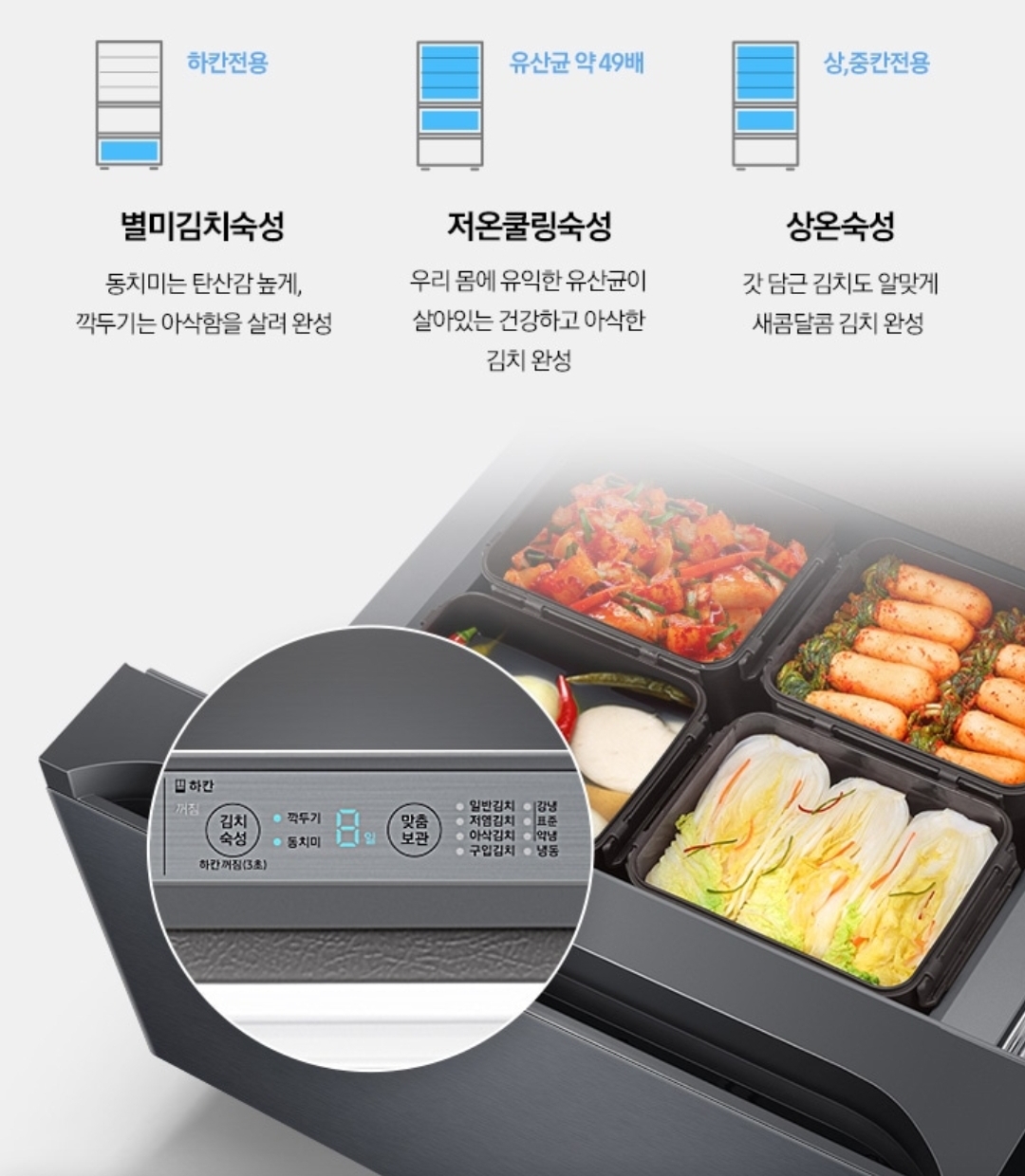 별미김치숙성, 저온쿨링숙성, 상온숙성 등 맞춤 숙성 기능을 제공합니다