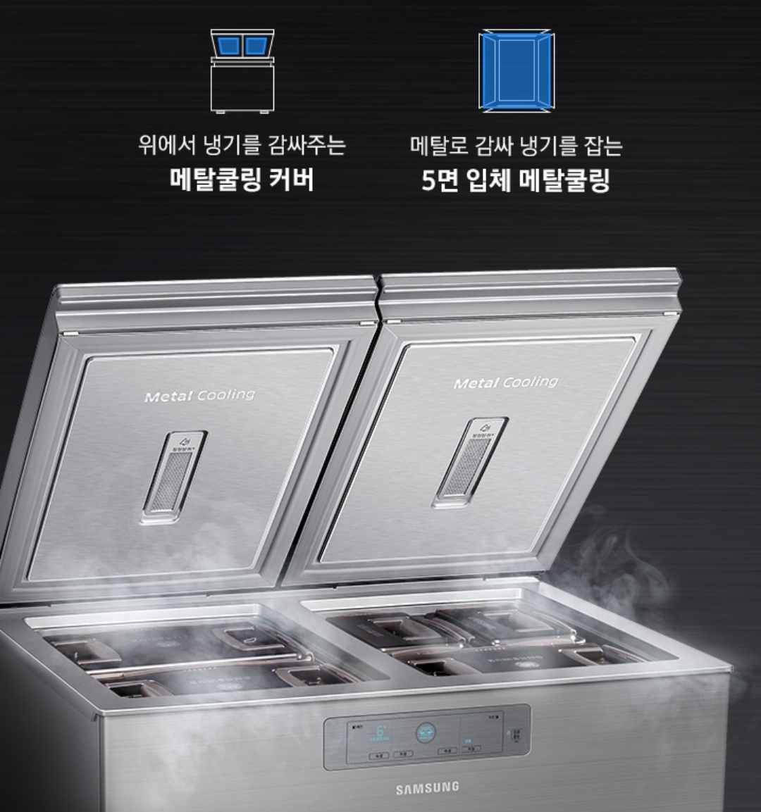 삼성 김치냉장고 스탠드형 비스포크 김치플러스 셰프에디션의 대표 기능인 메탈쿨링 입니다