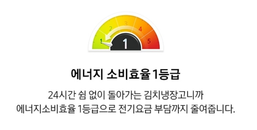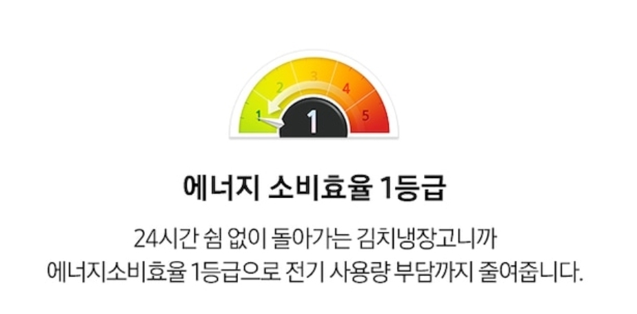 김치냉장고의 특성상 24시간 돌아가야하기에 에너지 소비효율 1등급은 중요한 스펙임에 틀림없습니다 그래서 보통 에너지 소비효율 1등급인 김치냉장고의 가격이 제일 비싸게 책정되는데요 10년 이상 사용할 제품이기에 에너지소비효율 1등급 제품으로 선택하는 것을 추천드립니다