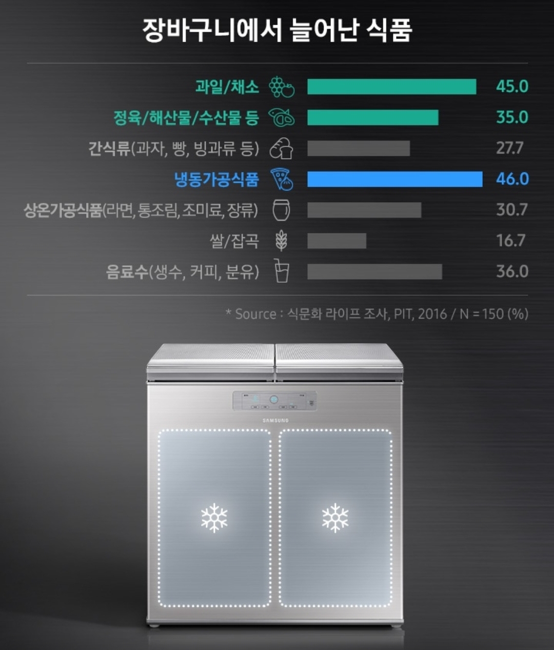 최근 조사에 따르면 냉동가공식품 구매량이 많이 늘어난걸 확인할 수 있습니다