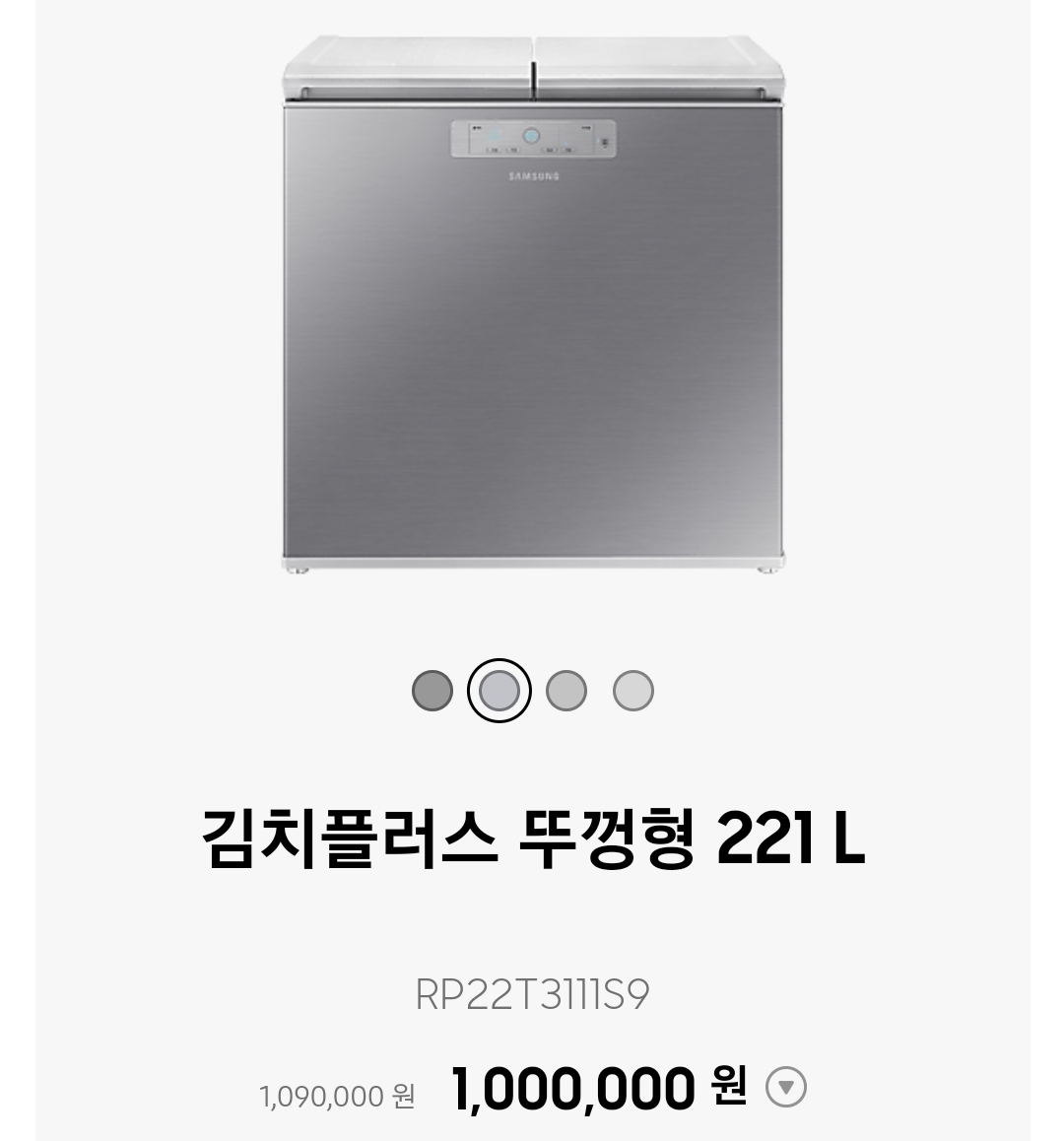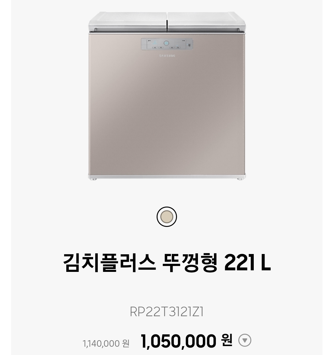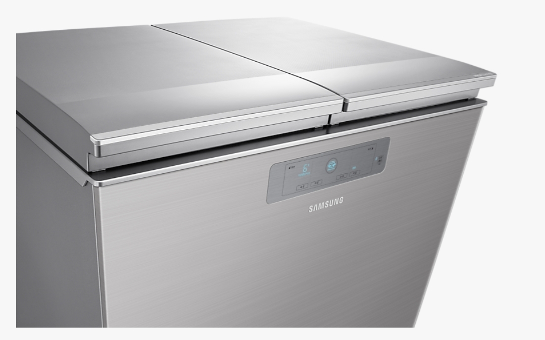 삼성 김치냉장고 뚜껑식 모델은 전체 메탈 소재를 적용하여 더욱 세련된 디자인을 보여주고 있습니다