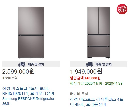 먼저 삼성 비스포크 냉장고, 김치냉장고 할인 제품 입니다