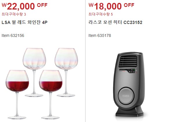 다음은 레드 와인잔 4P 그리고 라스코 모션 히터 입니다