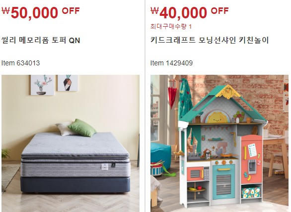 다음은 씰리 메모리폼 토퍼와 키드크래프트 모닝션샤인 키친놀이 세트입니다