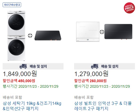 삼성 세탁기, 건조기 그리고 인덕션 세트 할인 입니다