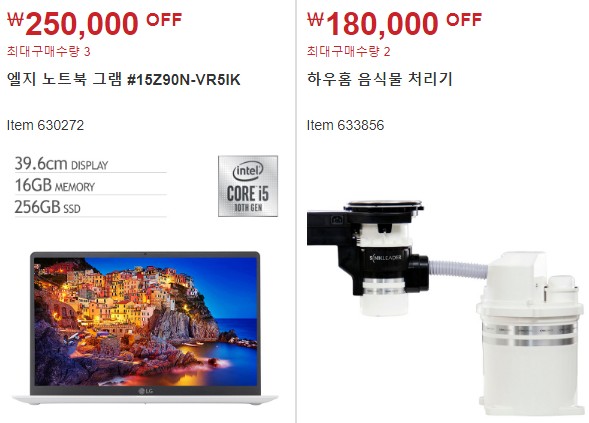 다음은 엘지 노트북 그램 그리고 하우홈 음식물 처리기 입니다