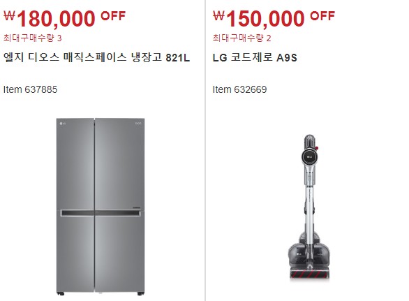 다음은 엘지 디오스 냉장고 와 엘지 코드제로 청소기 입니다
