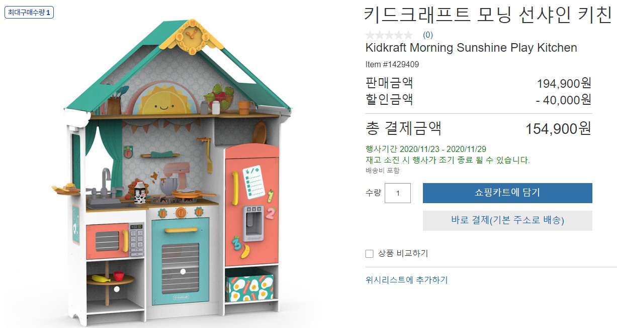 키드 크래프트 모닝션사인 키친 장난감 입니다 코스트코 블랙 프라이데이 4만원 할인이 적용됩니다