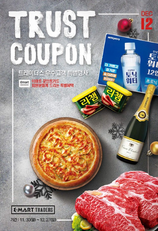 12월에는 정말 중요한 행사인 크리스마스가 있는 달 입니다 그래서 이마트 트레이더스에서는 크리스마스 물품 할인 행사를 진행합니다