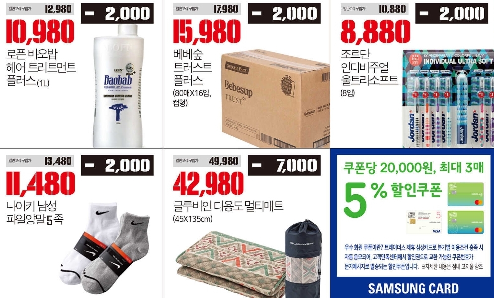 다음은 트레이더스 신선 식품 생활용품 할인 행사 내용입니다