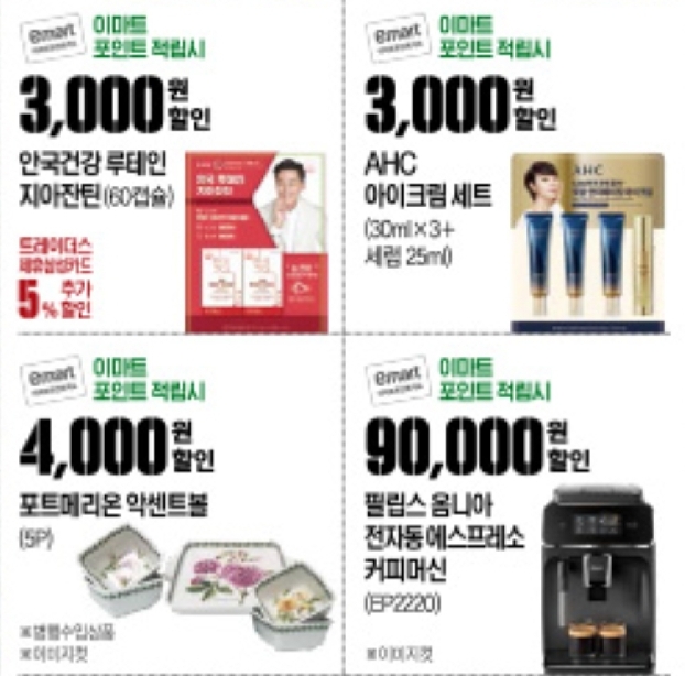 루테인 지아잔틴, AHC 아이크림 세트, 포트메리온 악센트볼, 필립스 전자동 에스프레소 커피머신 할인 판매 중 입니다
