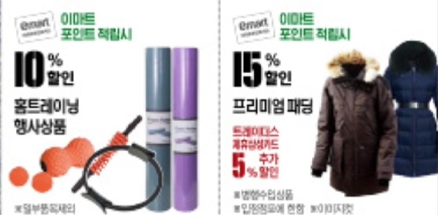 홈트상품은 10프로 프리미엄 패딩은 15프로 할인에 신용카드 이용시 추가 5프로 할인 행사를 진행 합니다