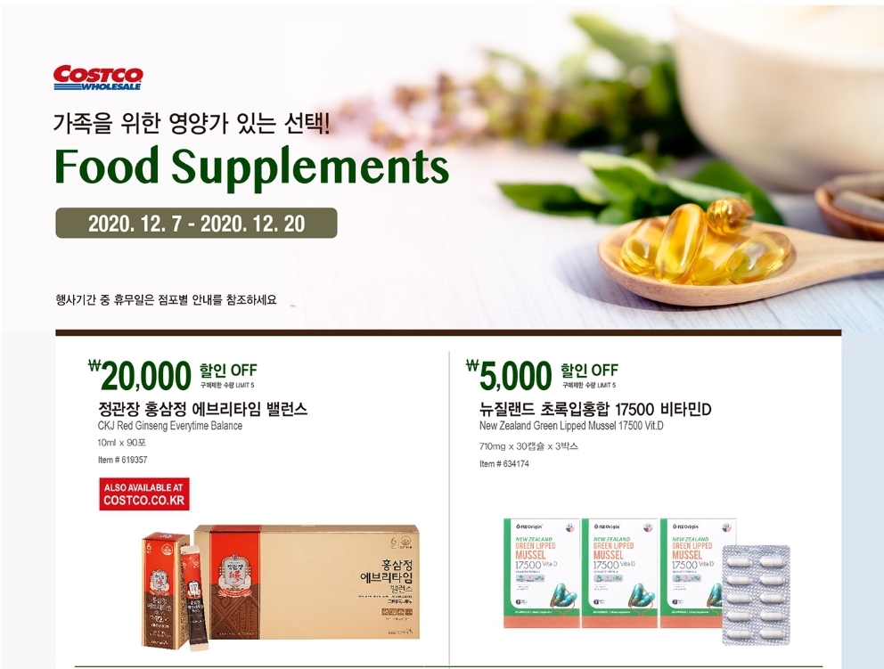 다음은 코스트코 12월 둘째주 영양제 할인 안내입니다