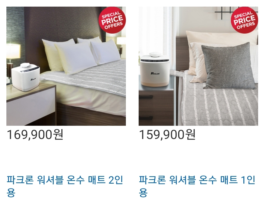 파크론 워셔블 온수매트 1인용 2인용 할인 판매 중 입니다